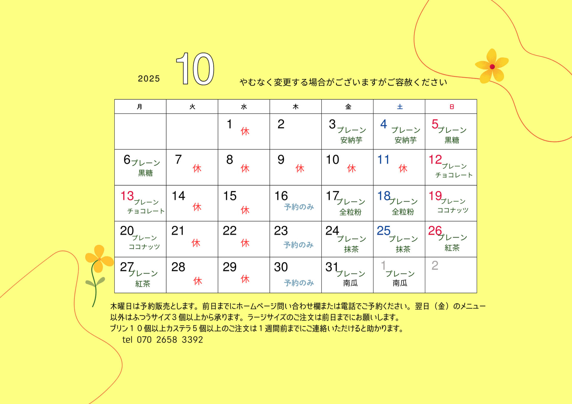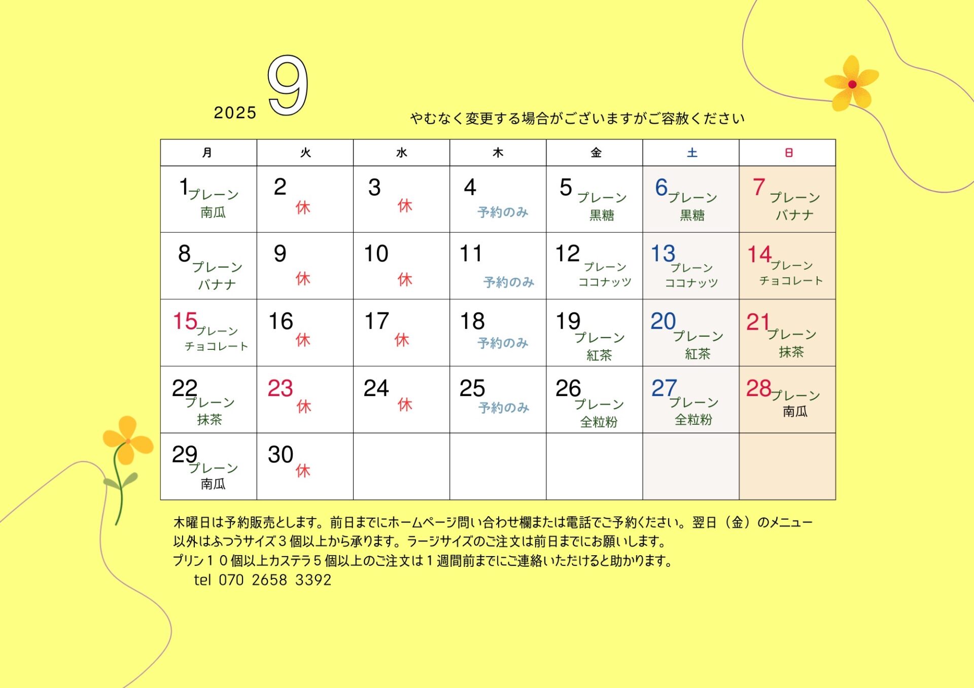 (やむなく変更する場合がございますが、ご了承ください)